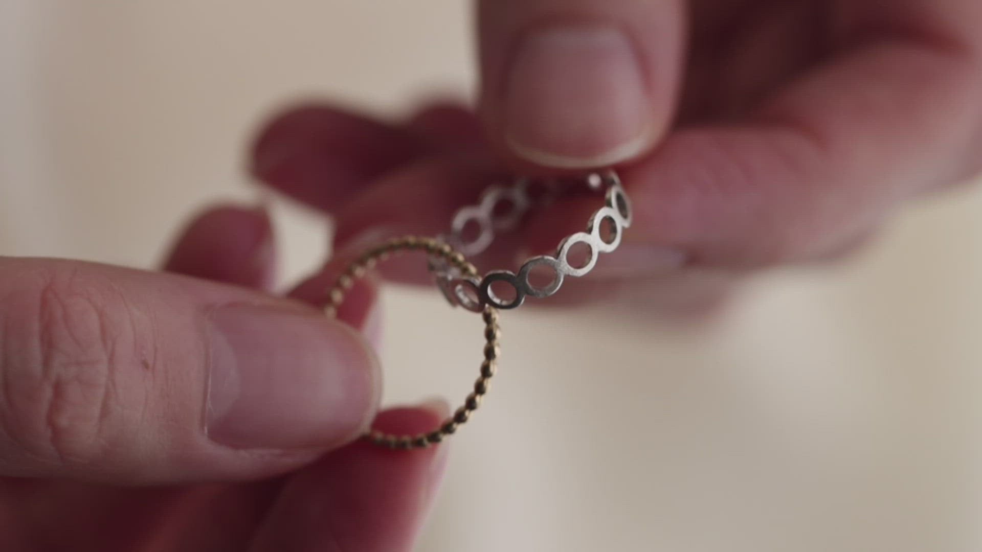 This jewelry is made up of two linked rings, each with a "maru" shape, which is a symbol of eternity, peace, and hope.